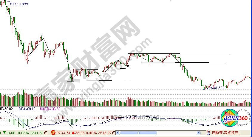 其實在股票走勢中就是這樣,我們運用到結合K線所畫出的走勢圖如下。筆者在對股票進行分析的過程中,就會結合這樣的走勢,這樣更能看清股票未來的趨勢,所以這是一套對于筆者來說是一種能夠帶來利潤的策略。