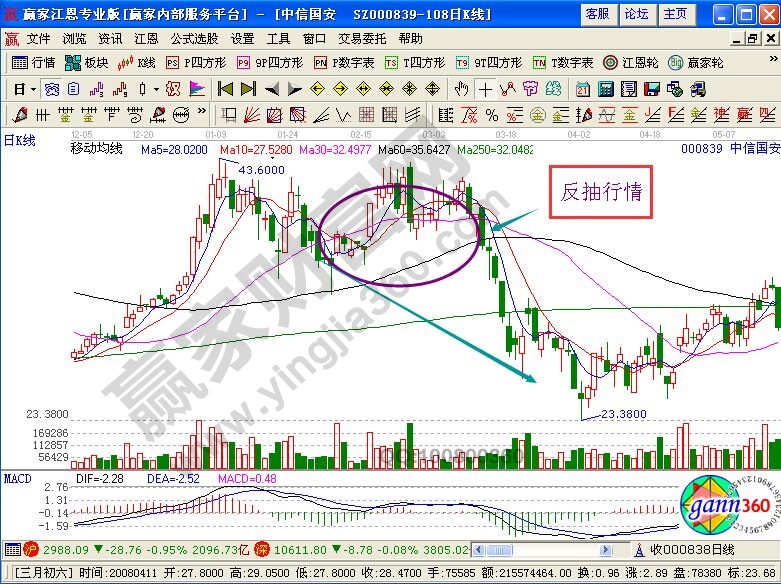 反抽行情,說明是市場處于波浪理論中下跌市的初期,所以投資者投資者不宜在股指短線連續急跌之后盲目斬倉出局,這樣往往損失較大。反抽行情中的唯一策略就是減磅,就是選擇大盤出現反抽走勢在擇機進行賣出,這樣反抽行情就給投資者提供了在跌勢初期的最佳減磅的機會,當然這種賣出時機通常是要選在發現反抽的上漲行情露出疲態,或者觸及上當阻力線的時候!