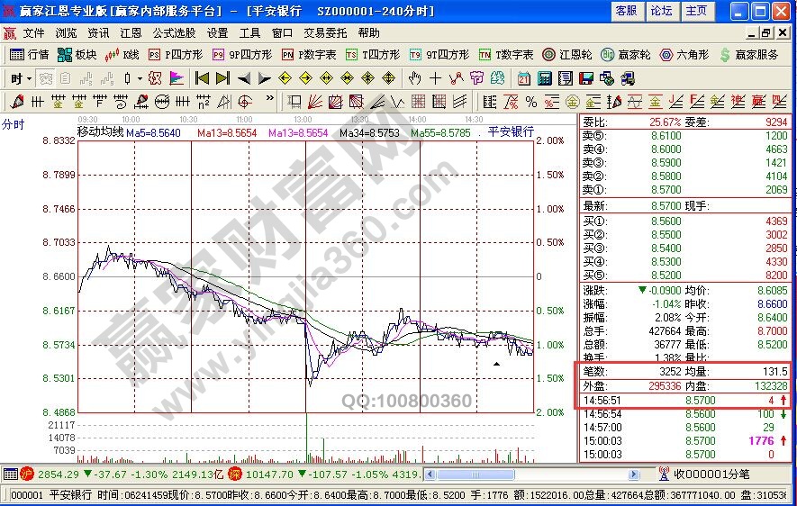 相信大家對于外盤和內盤的含義已經有了了解,當然只盯著定義,是很難看清其定義的。如果看盤中比較內盤和外盤的數量及其變化,那就是一件有趣的事情了,一般的說,如果內盤和外盤的數量變化作比較,就是非常有意思的事情了,請看下面的平安銀行在2016年6月24日時的外盤和內盤數量!