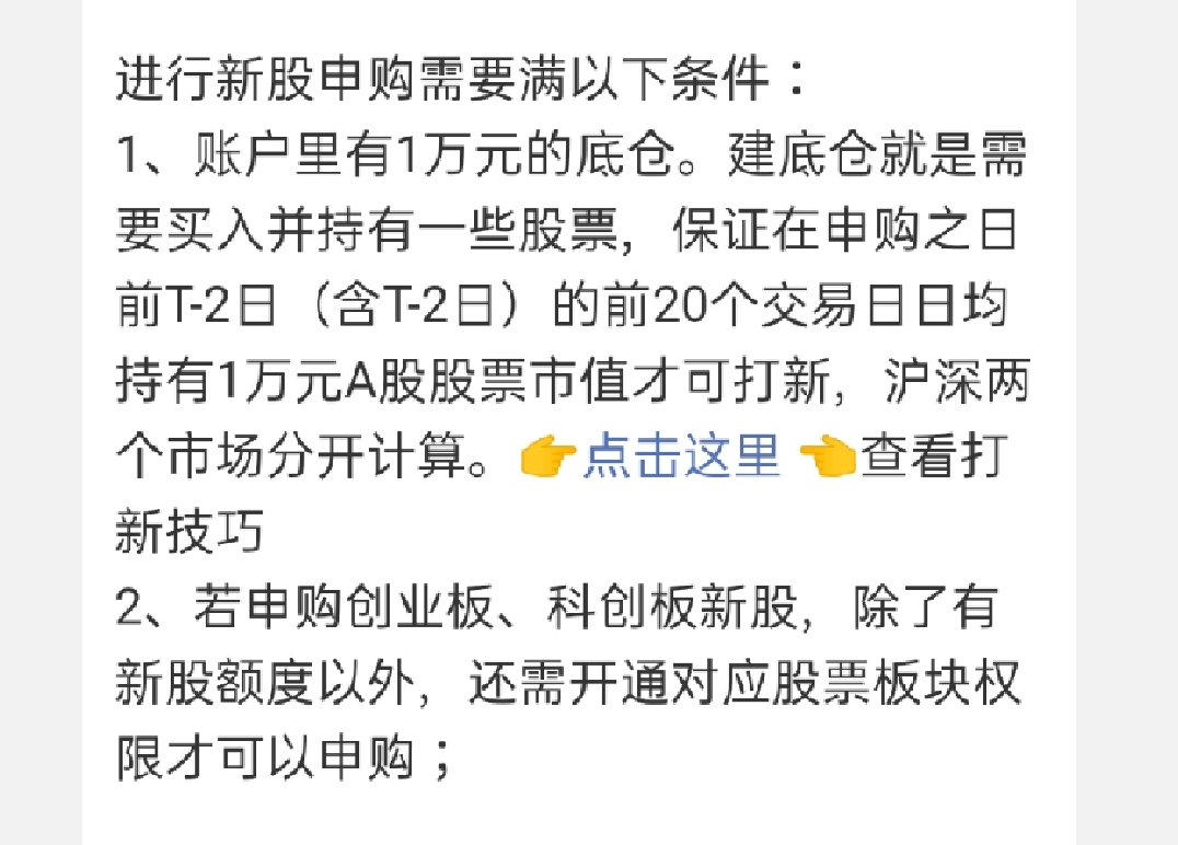 【1】在申購日前20個交易日的日均股票市值必須達到1萬元以上;賬戶內有一定的資金;