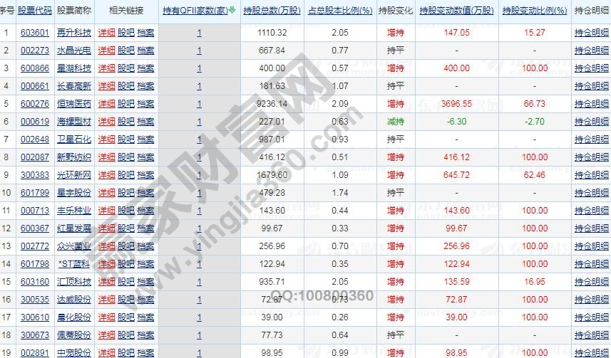 而對于qfii重倉股和我國內的基金重倉股一樣,都是有詳細的數據可以查看,2019年一季度qfii重倉股數據如圖下所示: