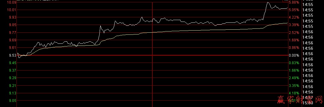 我們來看一下分時圖,下面的分時圖就是一個階梯上升的走勢。每次向上拉升的時候,都會有大的配合。