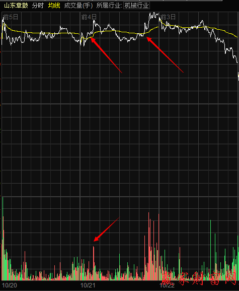 分析的第一步首先查看前面的分時圖明顯放量的地方是什么位置,凡是明顯放量的地方,要么構成支撐,要么構成壓力,如果股價突破了這些地方,它們就成為支撐。
