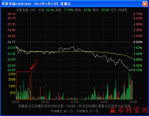 如上圖,上午第二時間段是最為關鍵的做盤時間節點,此時出現密集放量下跌,可以收到非常奇妙的操盤效果。這種走勢出現在不同的空間位置,各自的技術含義是不同的。
