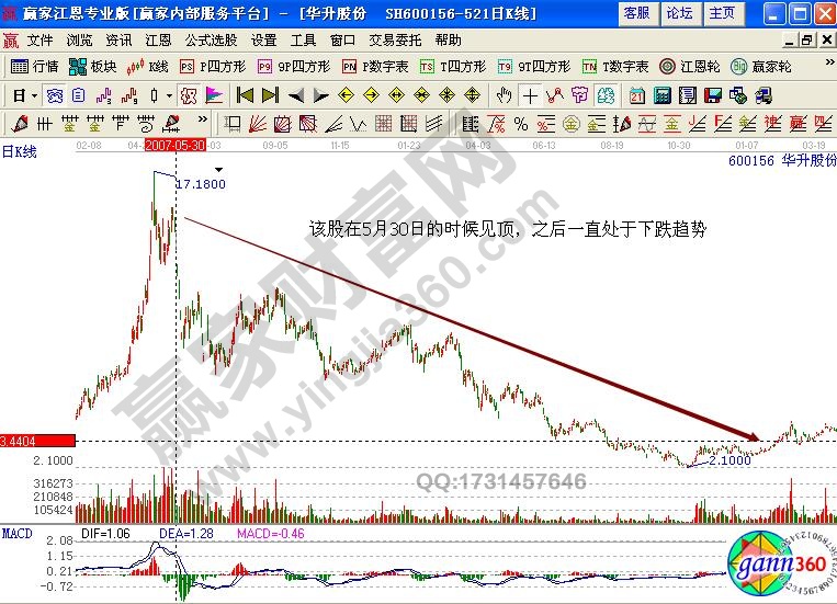 在此之前可以看出該股在2007年5月30日的時候股價已經見頂,這時候運作機構應該早已經離場出局了,剩余的都是實力非常一般的大戶,而且該股的基本面消息不好,也造成的該股的處于漫長的下跌趨勢中。