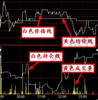 在一些軟件中,分時圖中不僅有分時線、均價線、成交量和持倉線。如下圖所示。對于前三種大家都非常熟悉,很多投資者額低于持倉線是不理解的,其實這個持倉線就是市場中所持有該股票的總量。