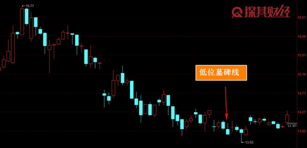 【1】股票剛剛下跌完所形成的低位墓碑線:股票剛剛下跌完所形成的墓碑線代表著整個下跌趨勢放緩,所以只是暫時性的止跌,后期依舊是有新低可能。