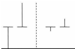 1.在下跌走勢后期,首先出現一根T字線,之后再出現一根倒T字線,兩根K線的開盤價與收盤價相差不多。