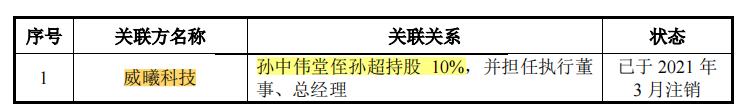 實際控制人孫中偉之弟孫中國、之妹孫忠娜控制、持股、報告期內注銷、轉讓共12家公司。報告期內,正在注銷或已完成注銷的關聯方包括:香港有限、萬拓電子、萬拓國際(香港)有限公司、深圳華和泰能源有限公司、深圳藏富影視股份有限公司、深圳藏富珠寶股份有限公司、深圳市便利電電子商務有限公司、深圳市愛配電子商務有限公司和威曦科技。