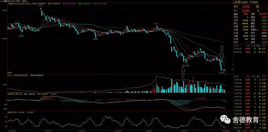 日內如果想要提高勝率,光看量和持倉還是不夠的。可以先看當前的大周期,找到一個大周期的方向,然后結合我們當天成交量、持倉量判斷出的方向,兩者方向一致了再去操作,可以大大提高成功率。