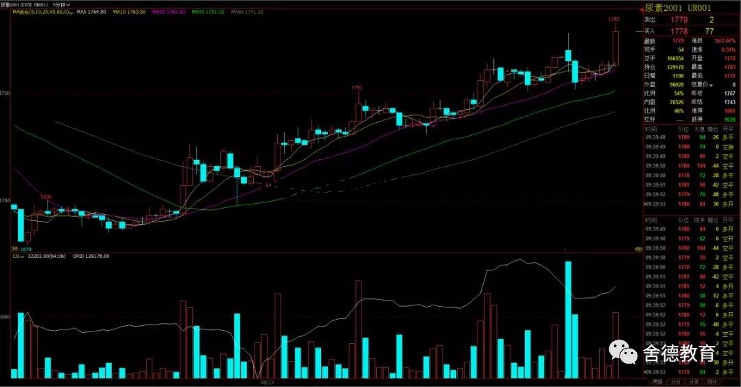 比如說8月13日的尿素期貨,尿素開盤的五分鐘,基本上就是比較大的量,后面基本上就定出一個方向,關鍵是后面要能夠站在這個五分鐘K線的均值的上方,這個時候就是偏多的做單思路。(詳情看視頻)