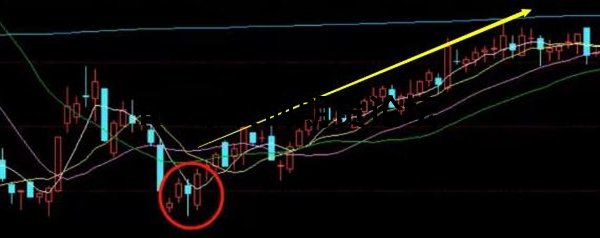 如果中間的三根陰線,帶有很長的上影線,那么該形態的看漲信號也會更加的強烈。