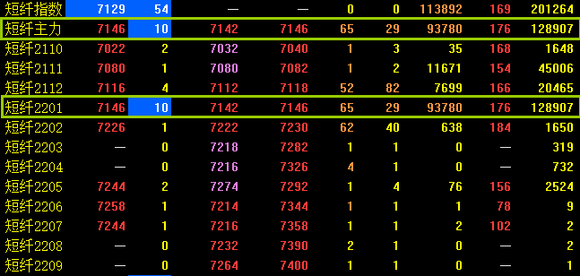 短纖期貨的當前主力合約為2201,可以從我上面的圖片中看出主力合約2201的成交量和持倉量都是最大的。