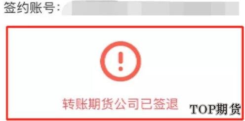 投資者開好期貨賬戶后,在手機銀行或網上銀行端辦理銀期簽約時出現“轉賬期貨公司已退簽”的提示是什么原因呢?如下圖所示: