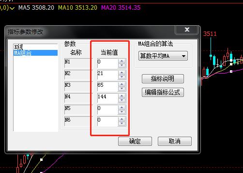 注:這里需要注意的是,每條均線都要設置,不需設置的就填入“0”即可。另外一點就是每條均線都具備一個顏色,這里可以根據大家的喜歡,自行將參數設置在其他當前值中。