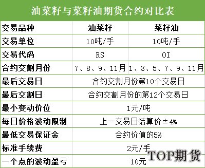 因為油菜籽主要用來生產菜籽油和菜籽粕,我們可以形象的將他們比喻為“雞生蛋”的關系,而通過對比兩這的期貨合約我們也可以看出它們之間的區別: