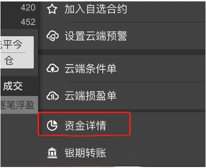在出現的主菜單欄列表中選擇“資金詳情”,就可以查詢到近6個月期貨賬戶的出入金情況。