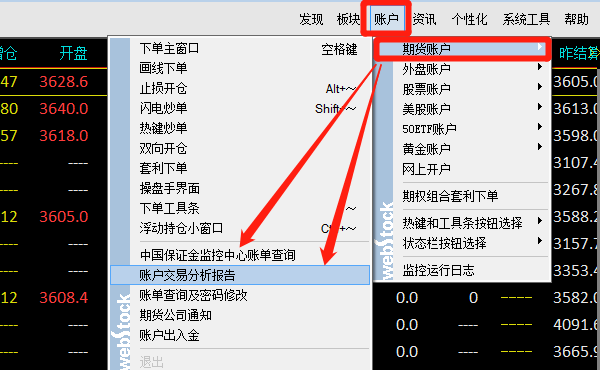打開文華贏順云軟件,點擊右上角的“賬戶”,選擇“期貨賬戶”,選擇“賬戶交易分析報告”,這里是通過交易軟件查看的結算單,可以查詢近6個月內的交易記錄。當然如果您選擇“中國保證金監控中心賬單查詢”也是可以的,不過它會跳出保證金賬戶的登錄界面,需要先登錄才能查詢。