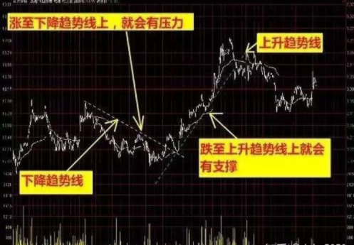 如圖所示,分時圖上有很多很明顯的分時高位以及分時低位,都是方便我們進行做短差的。將軟件分時圖打開,把分時圖壓縮到十個交易日的分時情況,進行高點以及高點連線,低點與低點進行連線,會得出很多明顯的支撐和壓力。