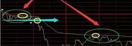 這種形態也是比較經典的當日應該建倉或者出局的形態,收到均價線進行壓制,震蕩后拐頭向下,是重要減倉點,賣點在每次反彈到均價線附近或者說是跌破平臺位置。