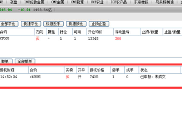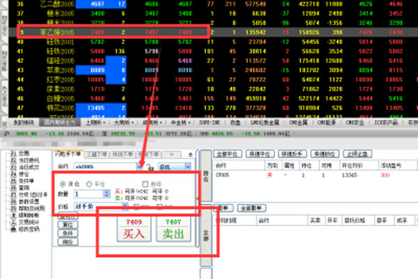 首先就是要選定期貨合約,這里選擇的合約要盡量以我們熟悉的、對后市行情把握比較準確的合約入手,比如我們如果想賣空苯乙烯2005,這個時候就可以單擊選中這個合約,之后在下方的交易框找那個選擇我們賣出的價格和買賣的方向。