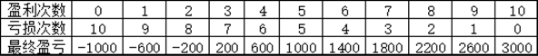下表列出在不同勝率,盈虧比同為3的情況下,10次交易,每次投入100美元的結果。