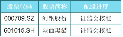 配股的流程,依次需要經過董事會、股東大會、發審委、證監會通過,最后一關是證監會核發批文。目前,陜西黑貓(601015)、河鋼股份(000709)均已獲得證監會核準尚未發行,接下來可能擇機啟動發行程序,如果你持有該兩股,需特別留意公告。
