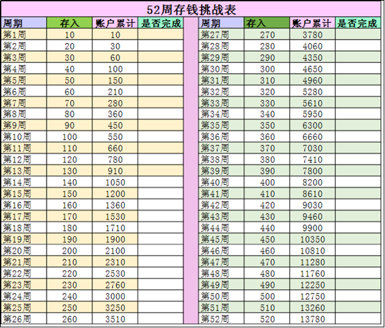沒有挑戰,一個人單打獨斗確實有點無聊了,那么52周攢錢法,就是一種有挑戰而且不無聊的攢錢方法。