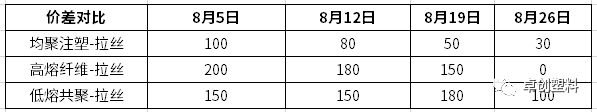 月內聚丙烯價格整體呈震蕩下滑趨勢,標品產量趨緊,具有一定的抗跌性。通過價差變化來看,不同品種仍有一定的強弱差異。均聚注塑月內產量環比增加7.86%,隨著產量的增加以及拉絲供應不多,本月均聚注塑-拉絲價差走弱,中旬起大多保持在30-50元/噸震蕩。由于天氣炎熱,口罩等醫療衛材需求明顯轉弱以及終端工廠利潤較差的影響,月內高熔纖維價格下跌明顯,加之高熔纖維本月產量同比去年處于高位,高熔纖維-拉絲價差于月末收窄至0元/噸。低熔共聚本月產量環比減少4.26%,雖然供應有所減少,但進口低價資源本月對國產料沖擊明顯,同時低熔共聚下游依舊處于季節性淡季,因此月內價差相對變化不大,震蕩為主。