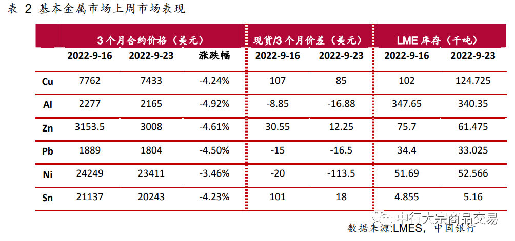 總體來說,宏觀因素再次壓倒基本面因素,主導基本金屬板塊走勢。展望后市,不論是宏觀層面的貨幣政策持續收緊,還是需求端中長期的隱憂,都令基本金屬難以啟動基礎堅實的反彈,預計基本金屬板塊將陷入寬幅震蕩。