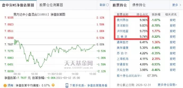 結果就是,白酒指數基金跌得有多慘,易方達中小盤跌的也差不多慘,因為兩者有超40%持倉股完全重合。