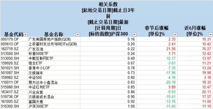 比如廣發石油,和滬深300相關性只有0.22,美國房地產指數,更是只有0.16。