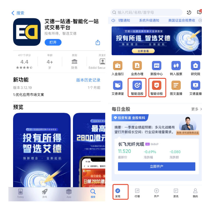 打開艾德一站通APP,在首頁即能看到「智能選股」、「智能診股」兩個功能板塊。用好它們,解決你投資時的技術困境,提前鎖定動蕩市場下的優質股,從容交易!