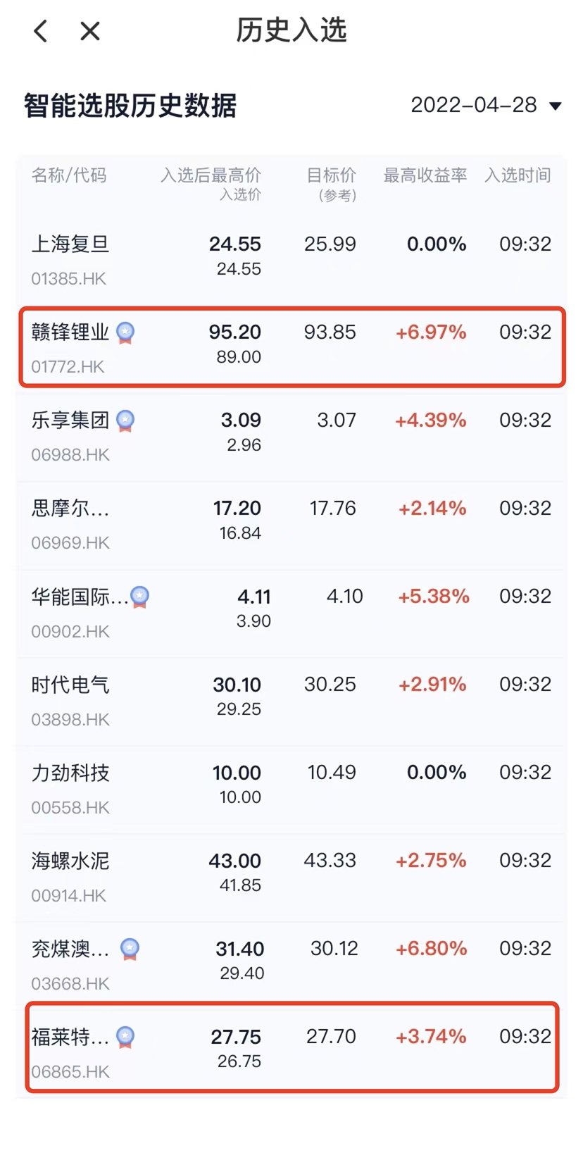 (2)在收益方面,入選個股創夢天地(.HK),上榜時間:2022/5/3 9:32,最高個股收益率12.69%