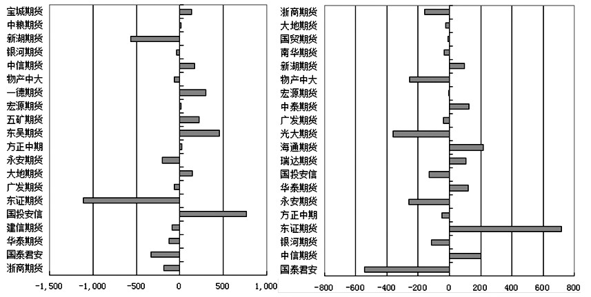 空頭前20席位中,減持空單的席位有13家。其中,減持數量超過500手的有1家,為國泰君安期貨席位,大幅減少543手。另外,減持數量介于100手至500手的有6家,分別為銀河期貨席位、永安期貨席位、國投安信期貨席位、光大期貨席位、物產中大期貨席位和浙商期貨席位,分別減少115手、262手、128手、362手、257手和157手。剩余6家席位增持數量不足100手。