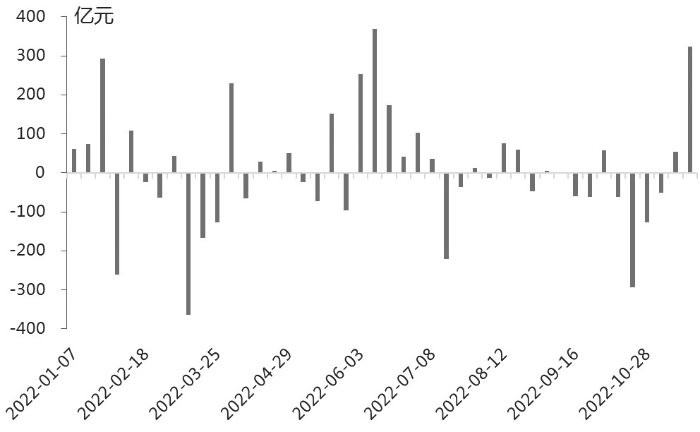 海外方面,美國通脹超預期下行后,市場開始交易加息放緩預期,美債利率和美元指數見頂回落,人民幣貶值壓力減輕,外資重新流入,上周北向資金大幅凈流入322.83億元。但上周多位美聯儲官員發表鷹派言論,市場再度上修加息預期。