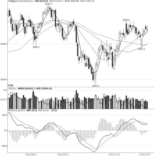 IC周線上期價回調至6000點附近得到一定買盤支撐,5周均線已上穿10、20周均線;兩周K線合并后確認中繼頂分型的形態。近5周成交逐漸萎縮,資金關注相較IF、IH呈現此消彼長的特點。日線上,期價再遇成交密集區上沿的壓力,5日均線在20日均線下方,MACD指標快慢線在0軸上死叉下行,負量能柱收斂。綜合看,期價維持蓄勢振蕩之中。操作上,可以等待回調,在6050點不跌破的前提下,可以適度關注反彈機會。