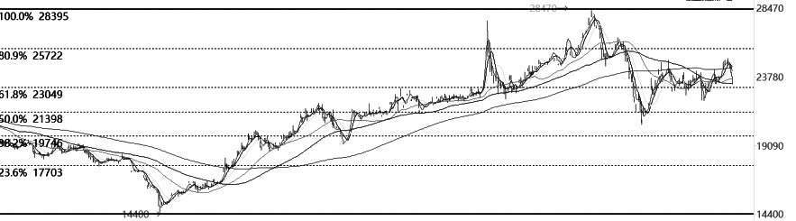 4月,滬鋅期貨創出高點后開始大幅回落,跌至黃金分割0.5對應的21400元/噸支撐位才止跌反彈,之后走出箱體振蕩走勢。近期,滬鋅期貨主力2301合約漲至24900元/噸箱體上沿受阻,價格開始回落。此外,短期均線開始下穿長期均線,走勢有轉弱的跡象。同時,MACD指標高位死叉;KDJ指標、RSI指標死叉后持續發散,沒有底背離和死叉的跡象,顯示價格有繼續走弱的趨勢。綜上,滬鋅反彈至箱體上沿受阻,價格持續回落,指標轉弱,弱勢格局將延續。操作上,前期空單繼續持有。