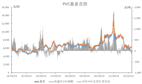 基差方面:1月12日,華東地區電石法PVC主流價上漲至6360元/噸, V2305合約期貨收盤價在6412元/噸,目前基差在-52元/噸,走強50元/ 噸,基差處于偏低位置。