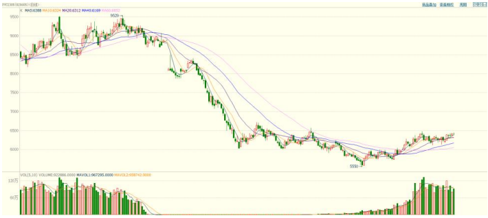 期貨方面:合約2305震蕩運行,最高價6446元/噸,最低 價6373元/噸,最終收盤價在6412元/噸,在5日均線上方,漲幅0.31%, 持倉量最終增加3550手至755708手。