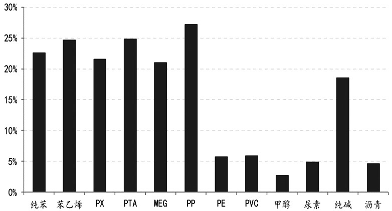 圖為2023年國內化工品產能增速預期