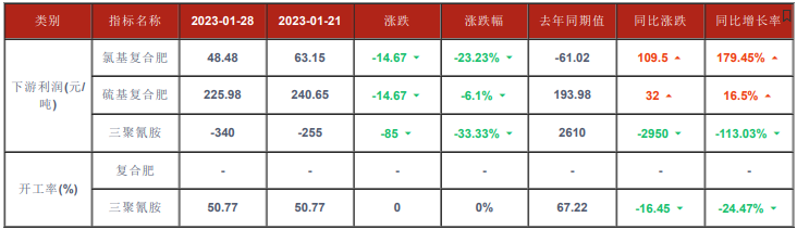 當前下游需求仍以復合肥采購和農業用肥為主,隨著價格高位偏強運行,復合肥采購謹慎為自主,負 荷周環比下降1.84個百分點至25.53%,其他工業用戶負荷變動不大。