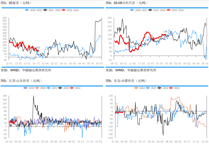 1、山東05基差102元/噸,周環比走弱3元/噸,05-09合約月差148元/噸,周環比走弱4元/噸。
