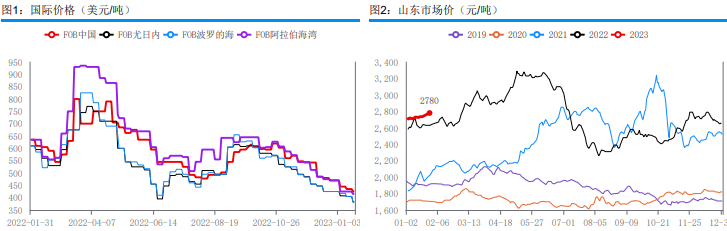 2、去年三季度以來,國際市場價格持續下行,當前已跌破2022年低點,內外價差持續壓縮不利于國 內出口,一季度國內尿素價格仍主要受國內需求情況以及行業政策導向影響。