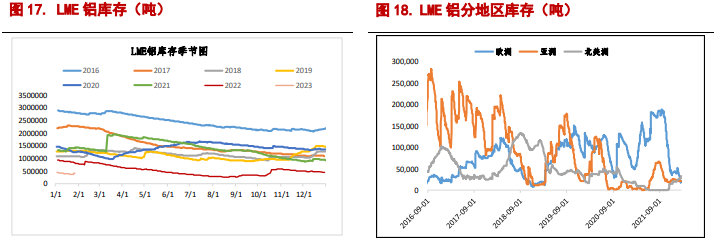 盤面情況:鋁價節后進入整理期,錄得小幅回落。假期期間,歐洲央行表示繼續加息 50bp 仍然是當前較為合理的選擇,同時聯儲 2 月加息臨近,即使加息 25bp 也對美元起到支撐,節前 宏觀過熱情緒回歸理性。節前市場交易的另一個利多是消費的回暖預期,而從現實來看,消費 復蘇需要緩沖時間,市場也需要現實加以驗證來提振信心。昨日 AFS 預計全球汽車市場芯片不 足導致汽車持續減產,此消息更是打擊了市場對于消費修復的信心。