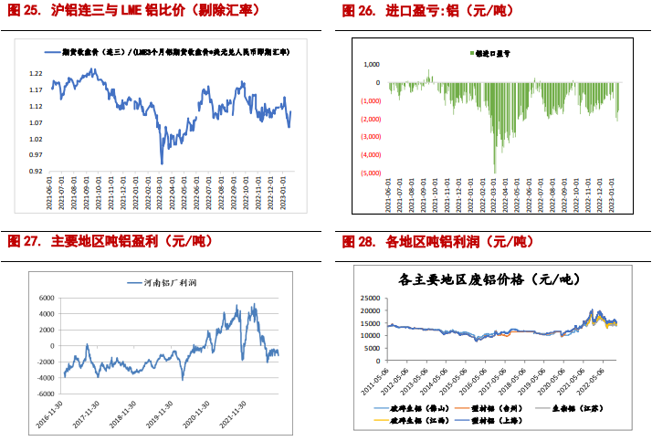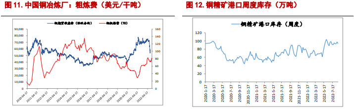 供應端:冶煉產能處于低位,節后將陸續回升。加工費回升至 82.2 美元/干噸,秘魯的 Las Bambas 和 Antapaccay 銅礦受到動亂影響,或影響全球 2%的銅礦供應,礦端受到較強影響;但 中國進入春節假期,各地冶煉廠進入放假模式,冶煉產能削減的更多,由此加工費反而回升。 但假期過后,冶煉端陸續恢復運營,礦端產出持續受阻,料加工費短期高位整理,中期仍有下行空間。