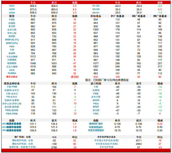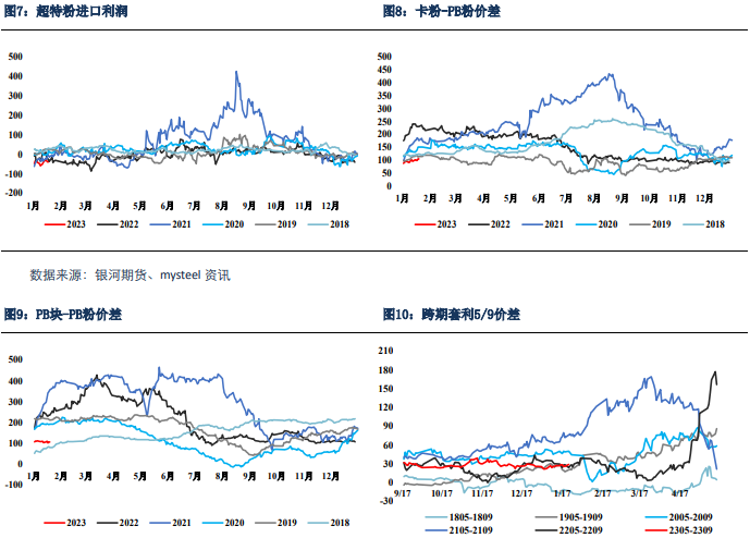 供需來看,去年上半年供應 端發運量不及預期,鋼廠利潤較好鐵水產量持續處于高位,鐵元素從上游轉向下游支撐 價格高位,而這兩點因素在今年上半年難以看到,因此今年上半年宏觀預期和基本面都 會弱于去年同期,價格上漲高位預計顯著低于去年。