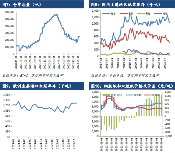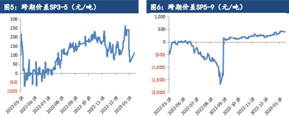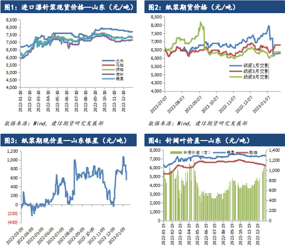 節前遠月合約深度貼水現貨價格,現貨基差修復走勢為主。節日期間及木漿系紙品現貨價格持穩運行。2023 年加拿大漂針漿獅牌1 月報價提漲20美元/噸,進一步利多盤面價格。