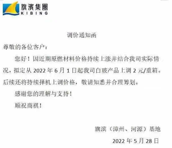 多家企業均在漲價函上表示,由于近期原燃材料成本上漲,公司決定從6月1日起上調玻璃價格。