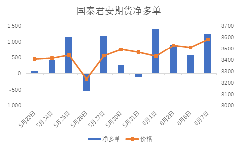 值得注意的是,5月23日至6月7日,國泰君安席位凈多持倉變化與錳硅期貨2209合約價格走勢變化有一定的正相關性:表現為凈多持倉增加,價格上漲;凈多持倉減少甚至轉變成凈空持倉,價格下跌。